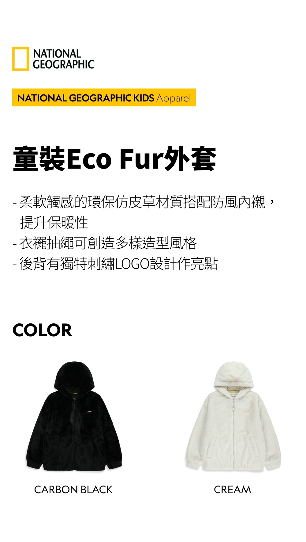 - 柔軟觸感的環保仿皮草材質搭配防風內襯,提升保暖性