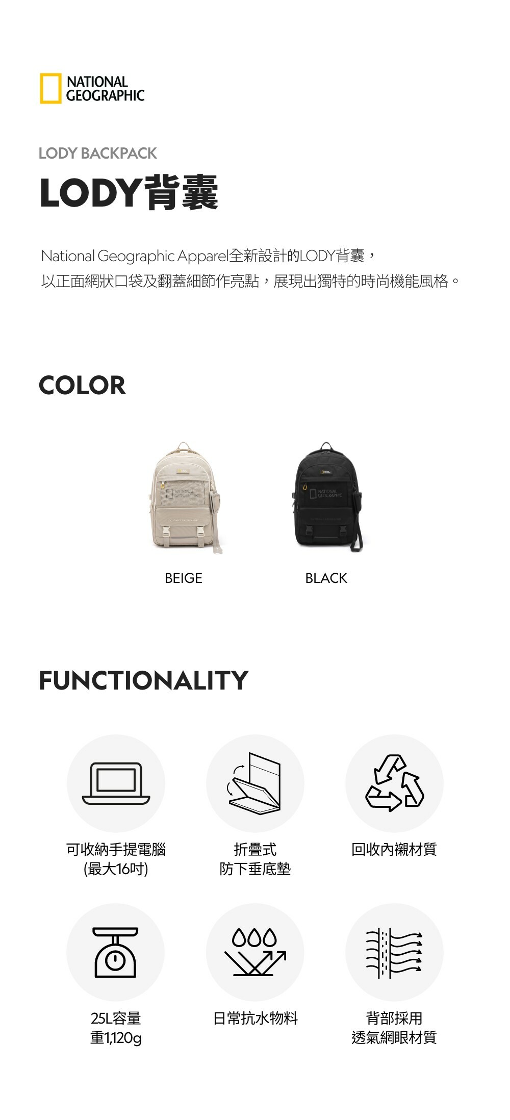 National Geographic Apparel全新設計的LODY背囊,以正面網狀口袋及翻蓋細節作亮點,展現出獨特的時尚機能風格。