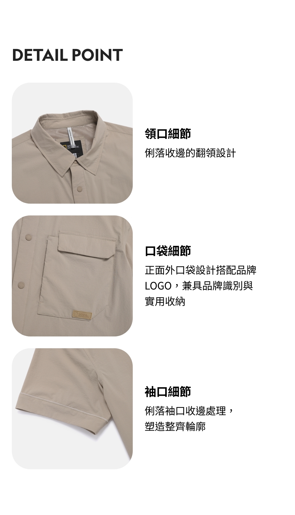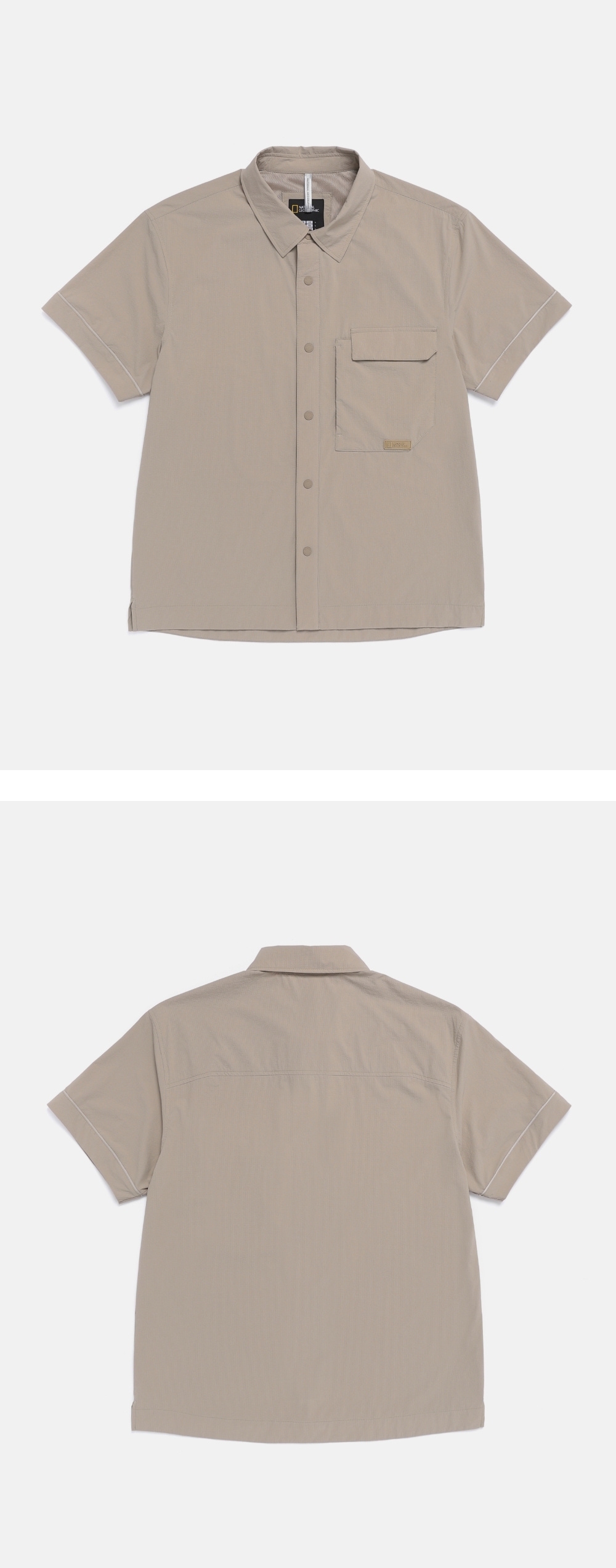 採用輕盈透薄的壓花梭織材質,觸感清爽且不易黏附肌膚。半寬鬆版型營造出自在而俐落的風格,配備正面貼式外口袋,提升實用收納。