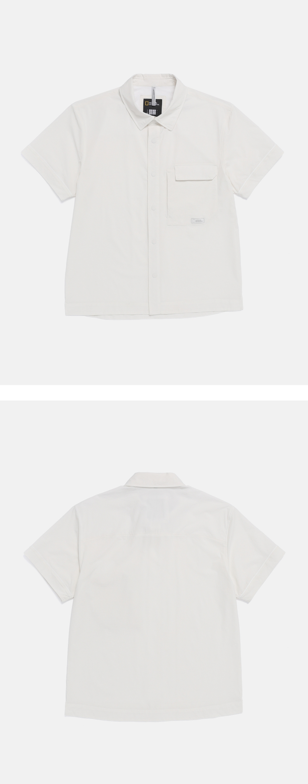 採用輕盈透薄的壓花梭織材質,觸感清爽且不易黏附肌膚。半寬鬆版型營造出自在而俐落的風格,配備正面貼式外口袋,提升實用收納。