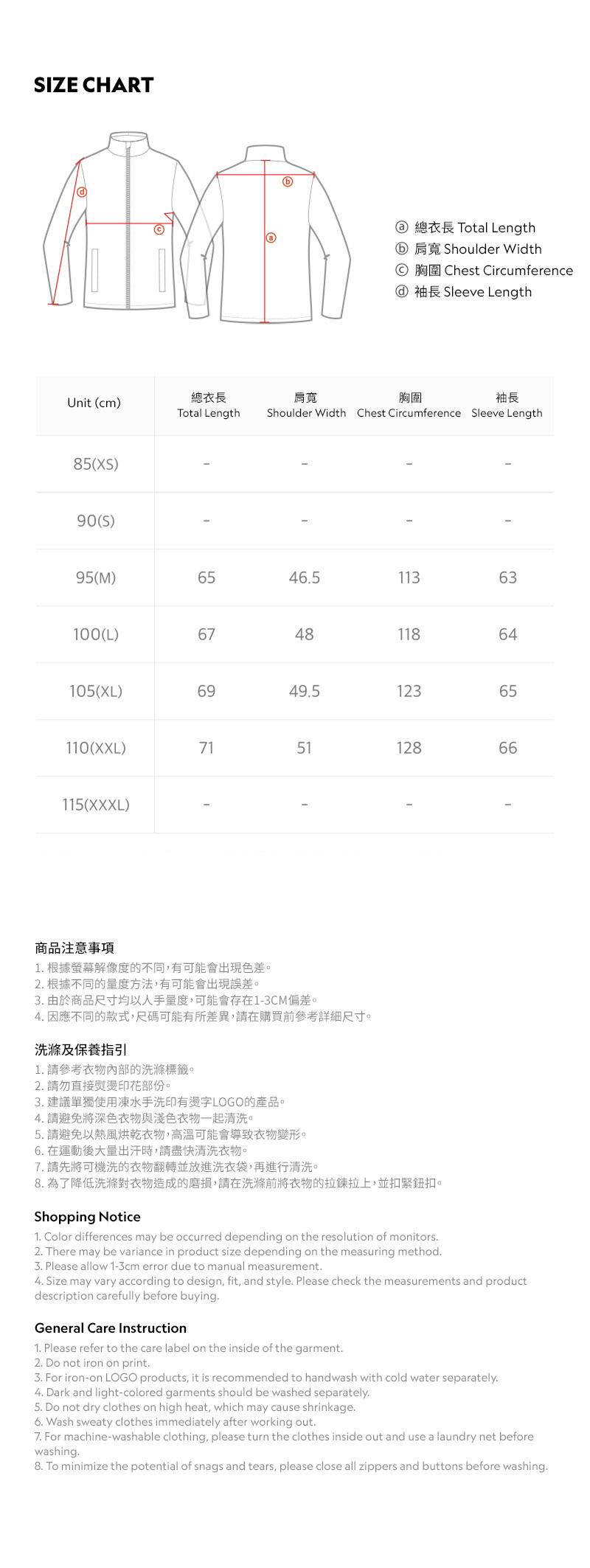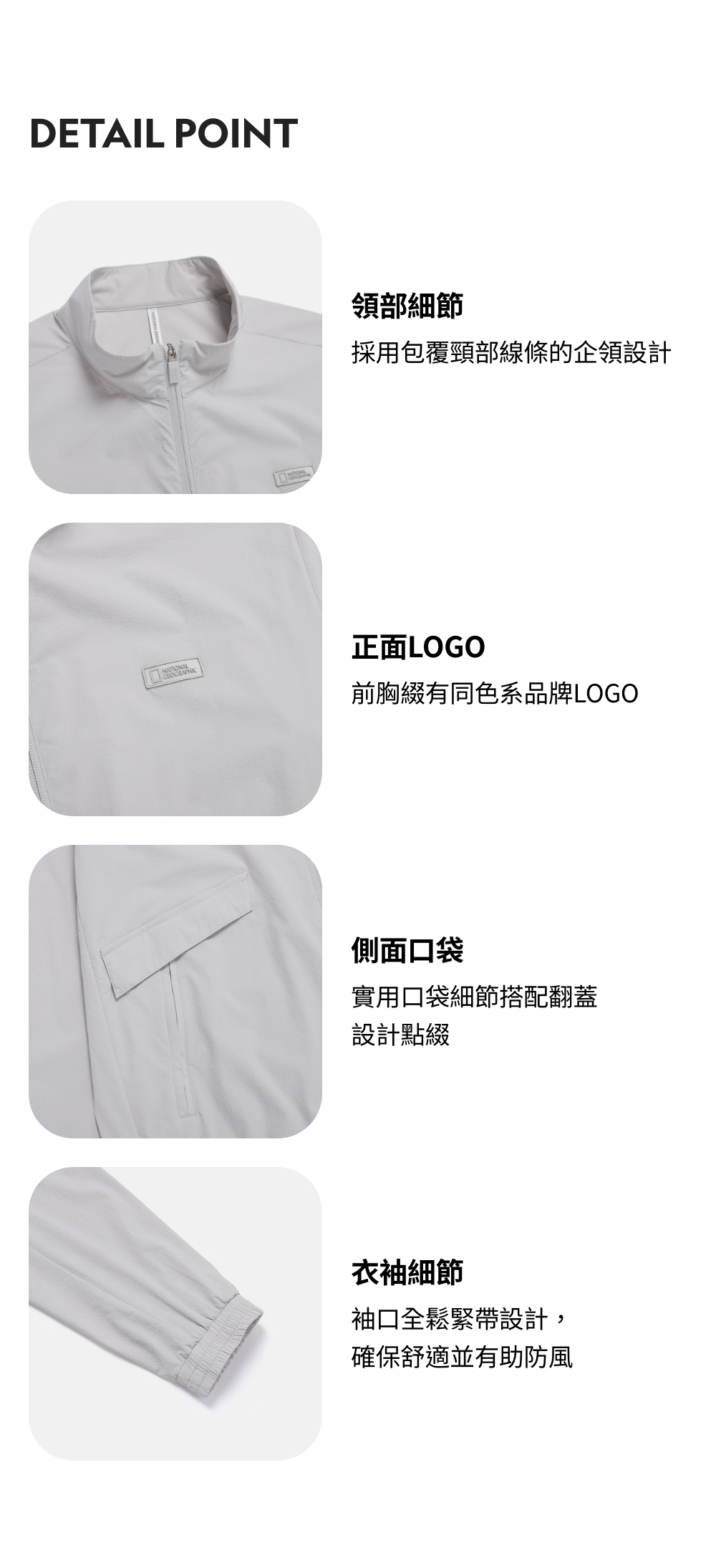 袖口全鬆緊帶設計,確保舒適並有助防風