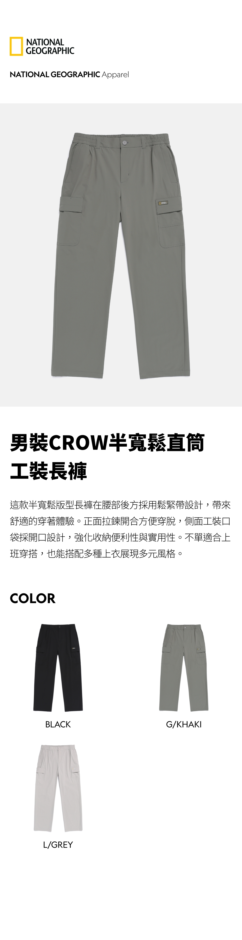 男裝CROW半寬鬆直筒工裝長褲