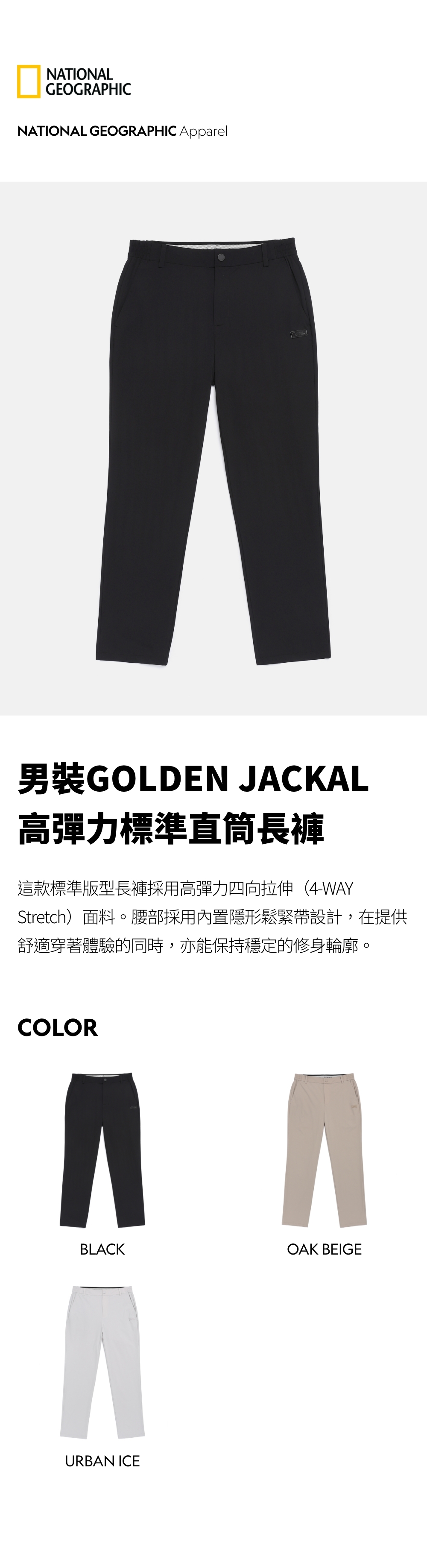 這款標準版型長褲採用高彈力四向拉伸(4-WAY Stretch)面料。腰部採用內置隱形鬆緊帶設計,在提供舒適穿著體驗的同時,亦能保持穩定的修身輪廓。
