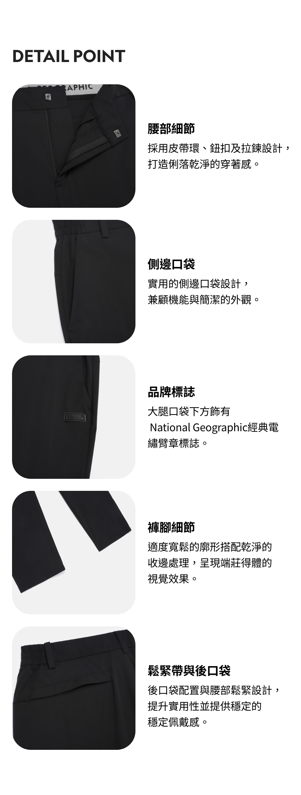 大腿口袋下方飾有 National Geographic經典電繡臂章標誌。