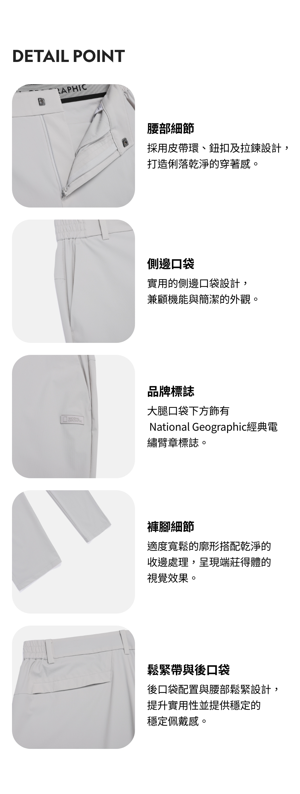 大腿口袋下方飾有 National Geographic經典電繡臂章標誌。