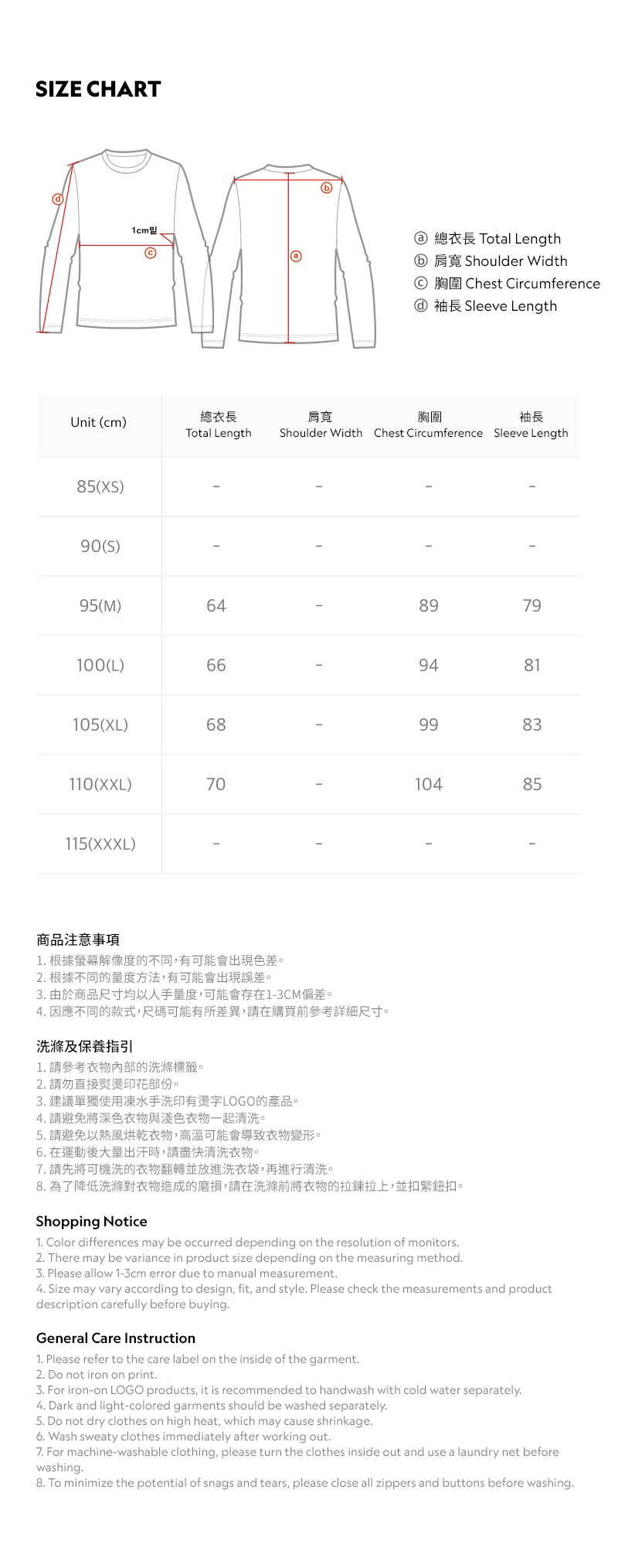 - 採用高彈性的功能性物料,提供活動性及防紫外線功能