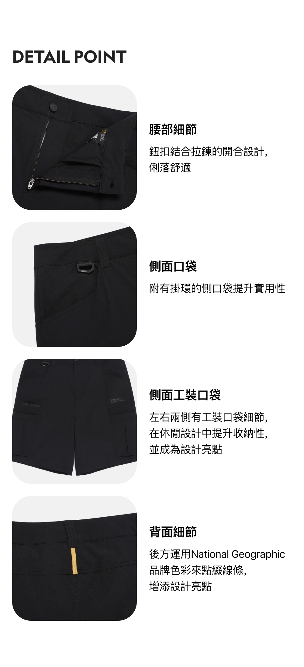 左右兩側有工裝口袋細節,在休閒設計中提升收納性,並成為設計亮點