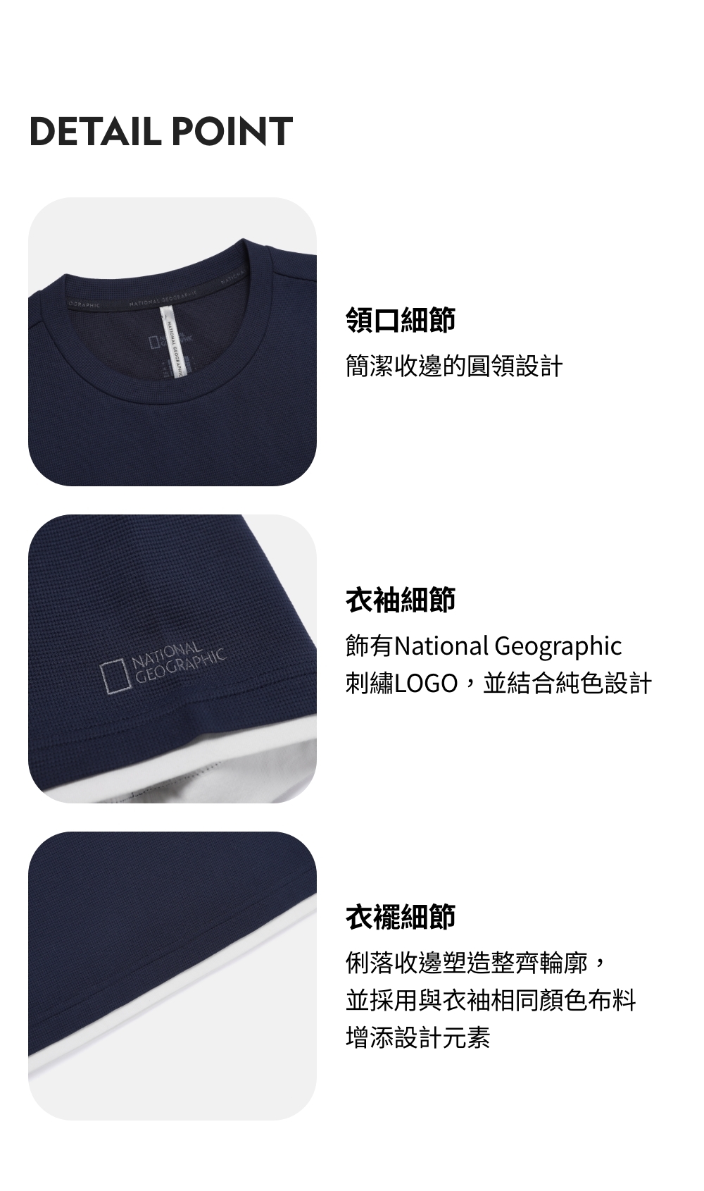 飾有National Geographic刺繡LOGO,並結合純色設計
