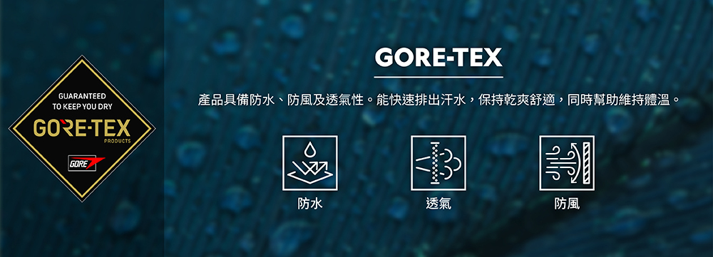 - 採用GORE‑TEX雙層材質,有效防水防風,兼具良好透濕性