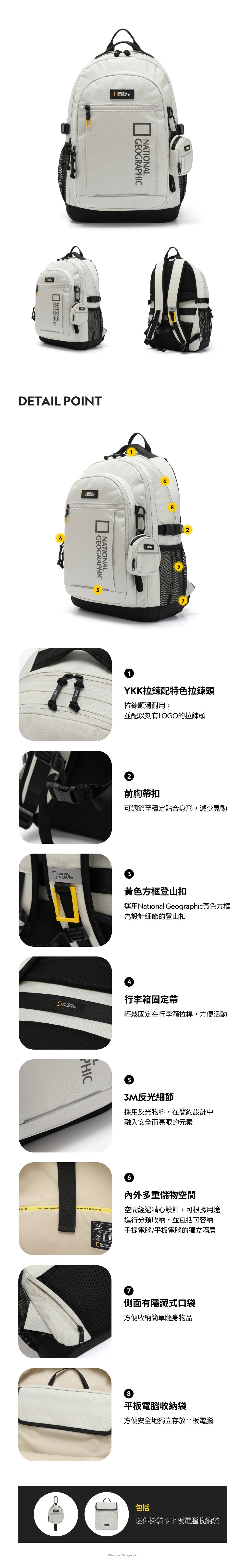 內外多重儲物空間:空間經過精心設計,可根據用途進行分類收納,並包括可容納手提電腦/平板電腦的獨立隔層