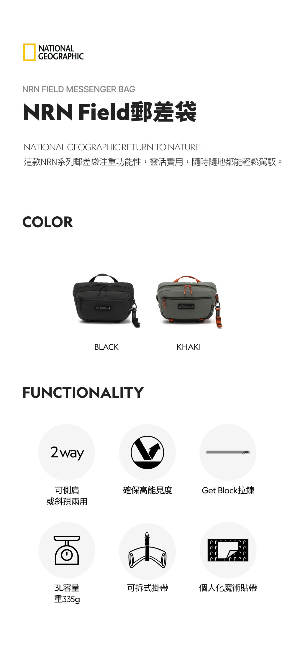 National Geographic Return to Nature. 這款NRN系列郵差袋注重功能性,靈活實用,隨時隨地都能輕鬆駕馭。