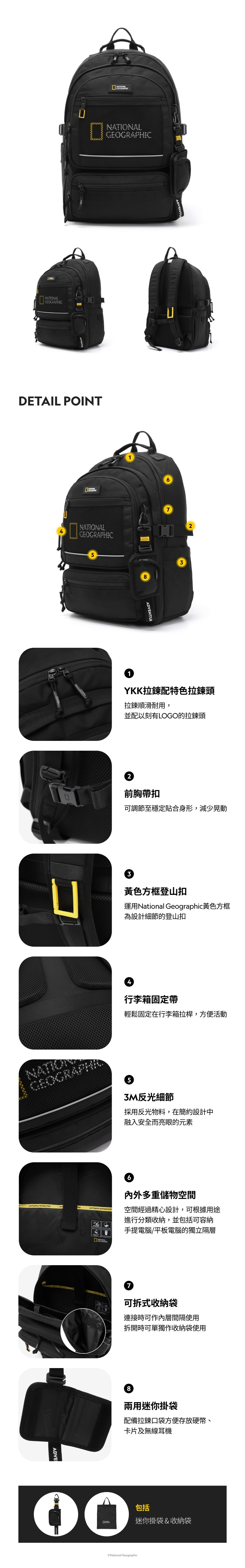 National Geographic Apparel RIPPLE背囊以獨特雙重外口袋為特色,並設有3大收納隔層,帶來強效儲物功能。