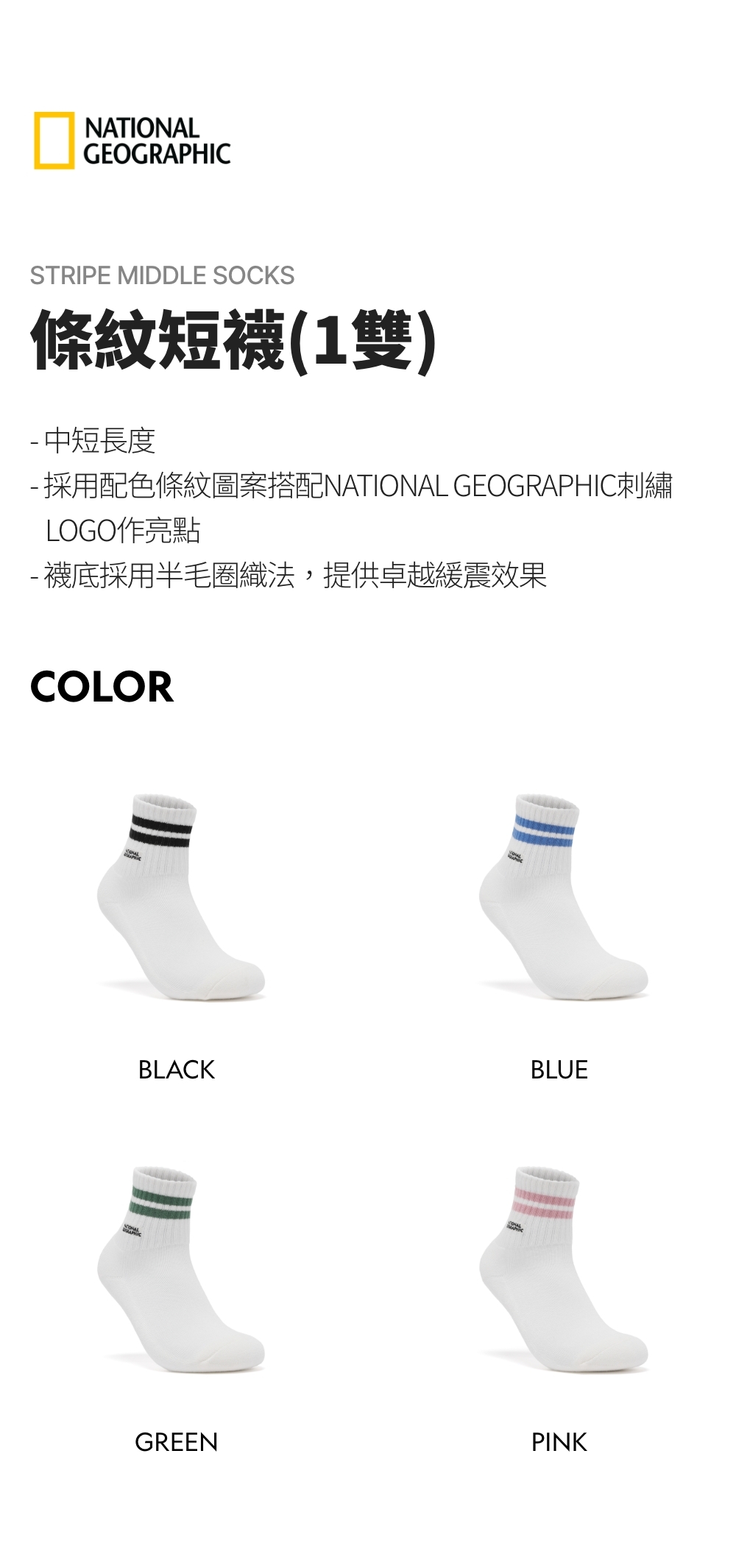- 採用配色條紋圖案搭配National Geographic刺繡LOGO作亮點