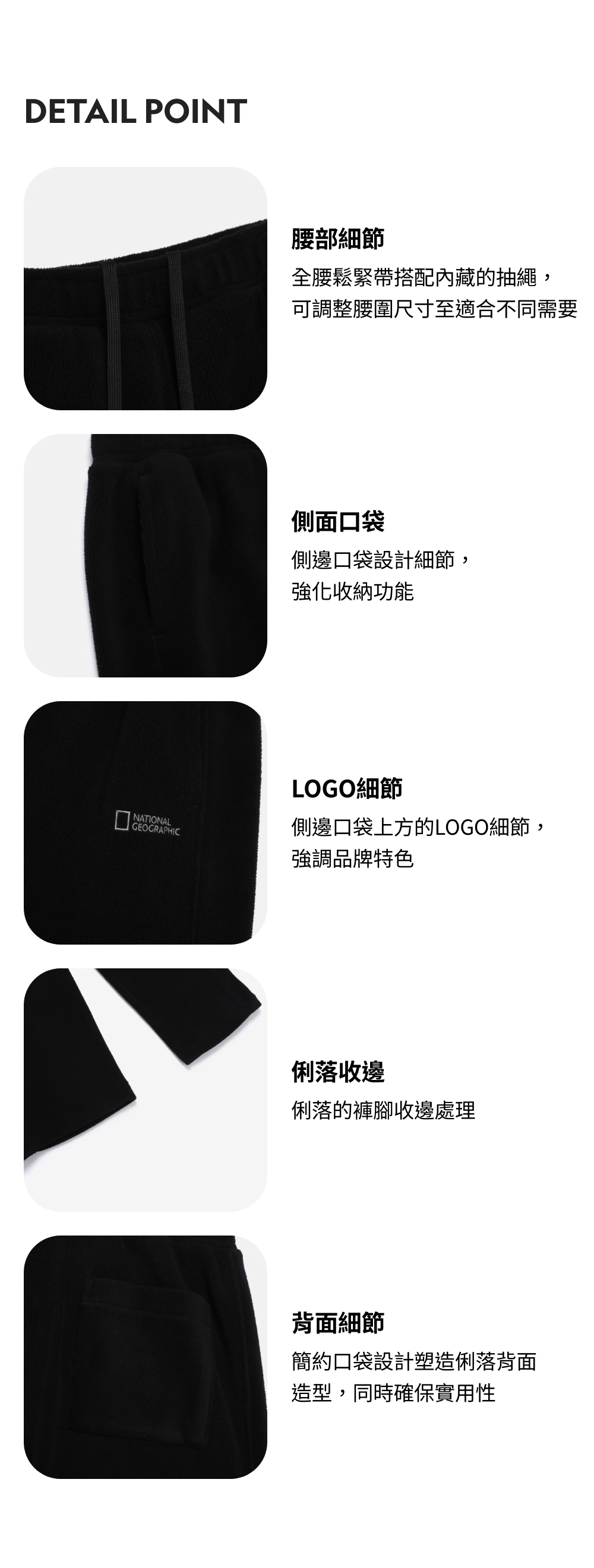全腰圍鬆緊帶設計提供舒適穿著感,易於保養且保暖性佳。
