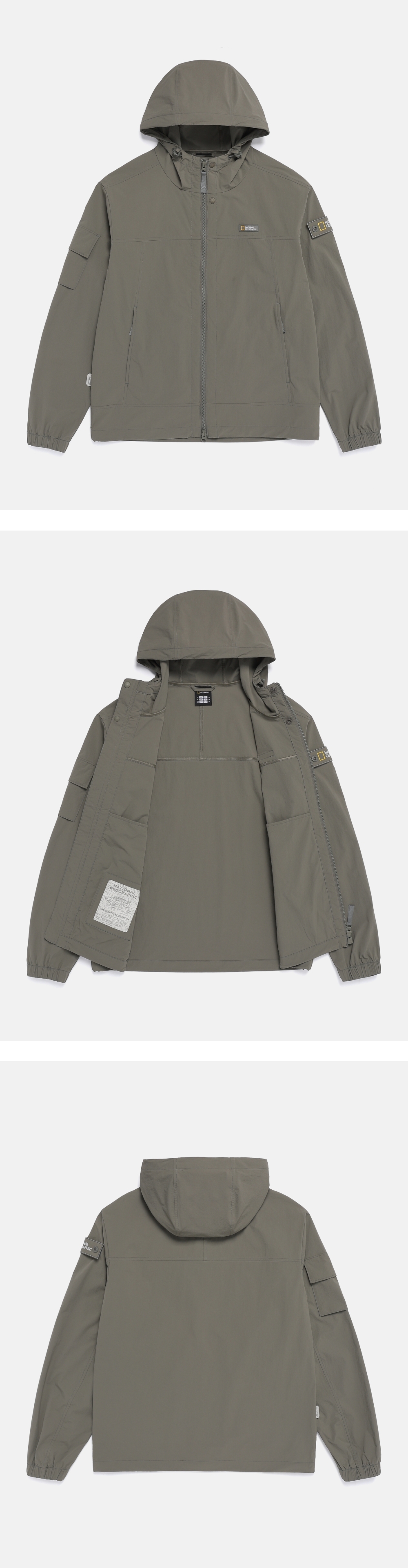 材質輕薄而實用,適合由轉季到盛夏期間穿著,且具備清涼觸感、舒適彈性與自然褶皺質感,營造出高級外觀。採用有接觸涼感與防曬功能的材質,為輕量戶外活動或日常穿搭帶來靈活自在的舒適感。連帽與衣襬均有抽繩設計,可隨意調節輪廓並具擋風效果,進一步提升實用性。