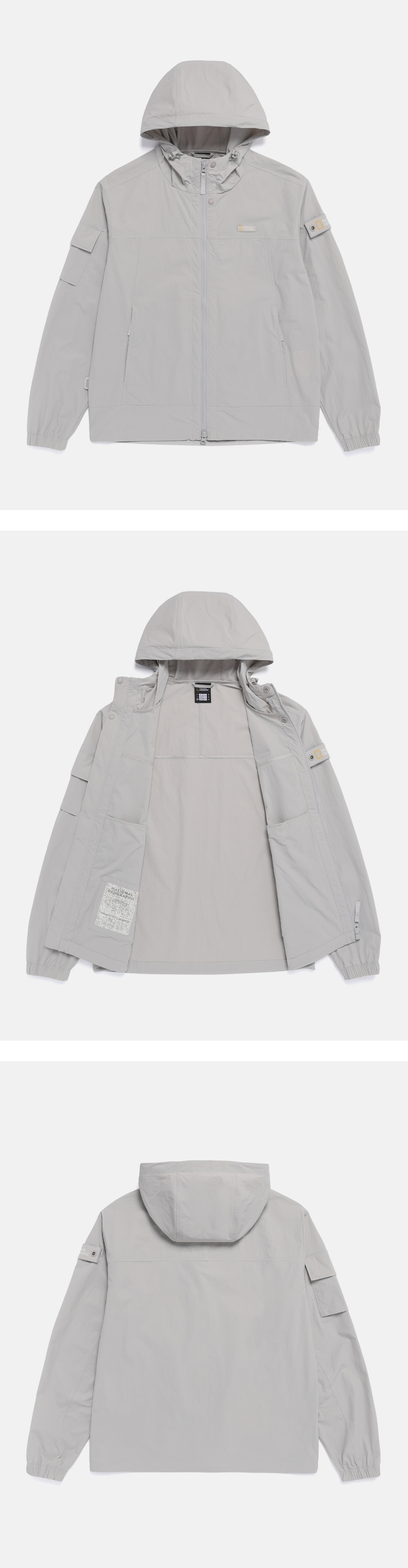 材質輕薄而實用,適合由轉季到盛夏期間穿著,且具備清涼觸感、舒適彈性與自然褶皺質感,營造出高級外觀。採用有接觸涼感與防曬功能的材質,為輕量戶外活動或日常穿搭帶來靈活自在的舒適感。連帽與衣襬均有抽繩設計,可隨意調節輪廓並具擋風效果,進一步提升實用性。