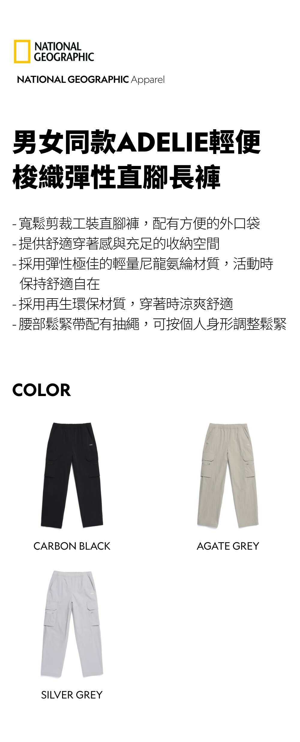 - 採用再生環保材質,穿著時涼爽舒適
