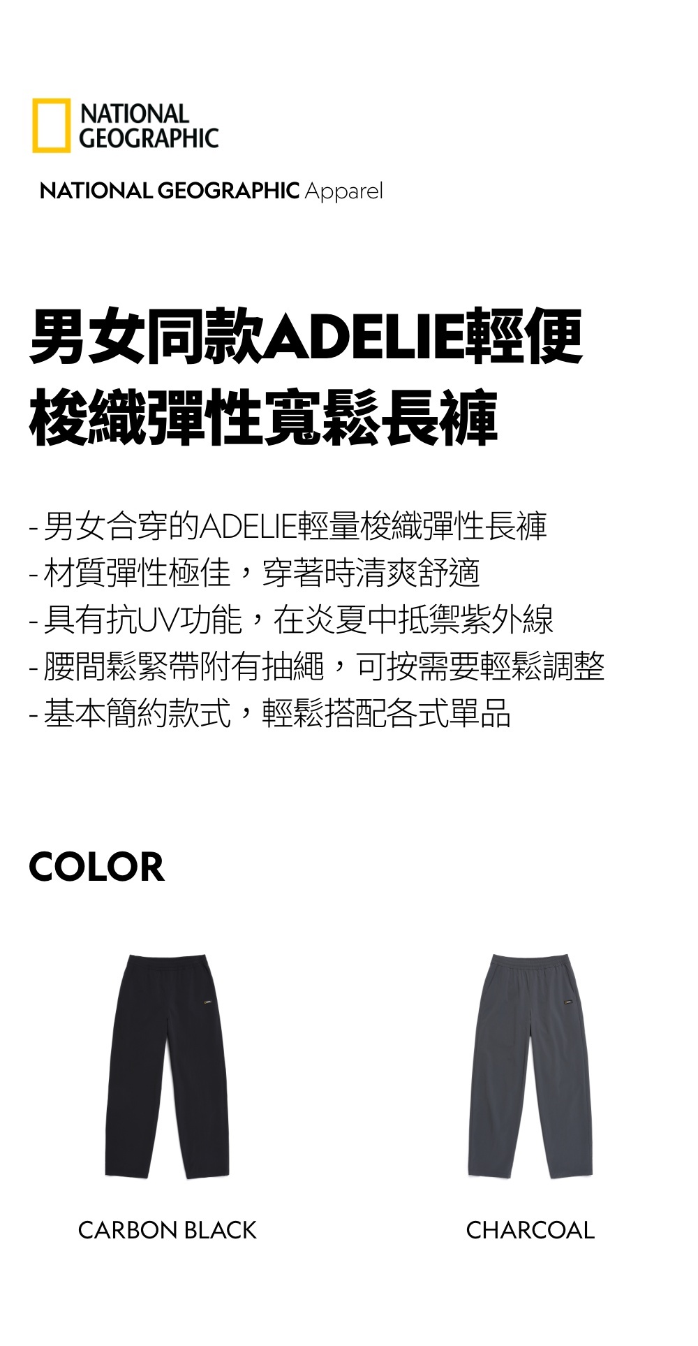 - 男女合穿的ADELIE輕量梭織彈性長褲
