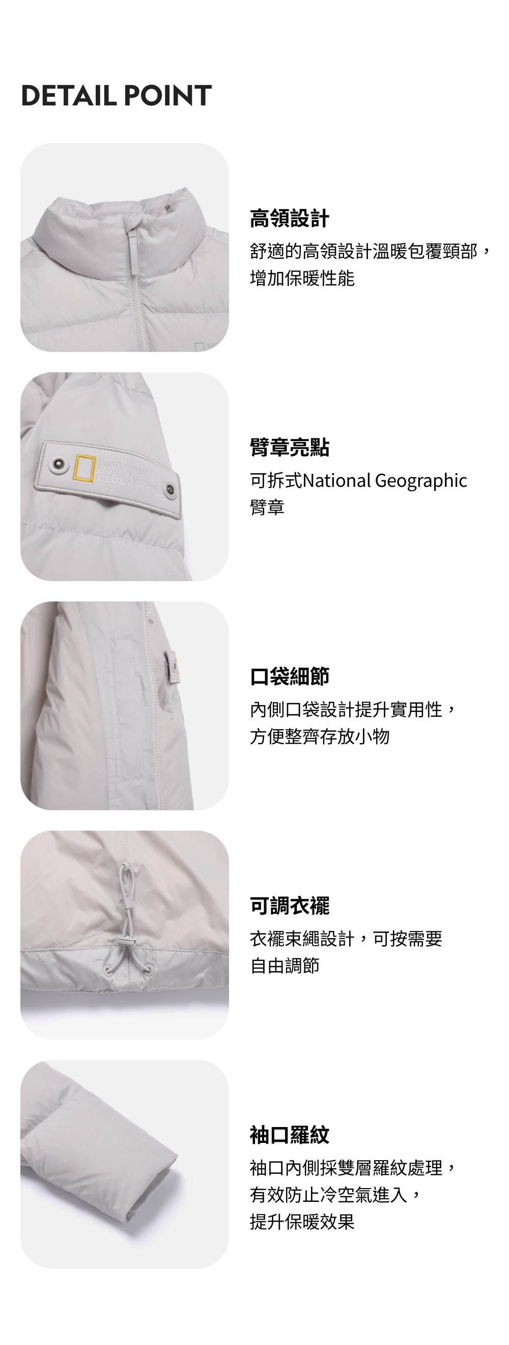採用輕盈且堅韌的20D ripstop材質及80:20鵝絨填充物,帶來卓越保暖效能與豐盈蓬鬆感。