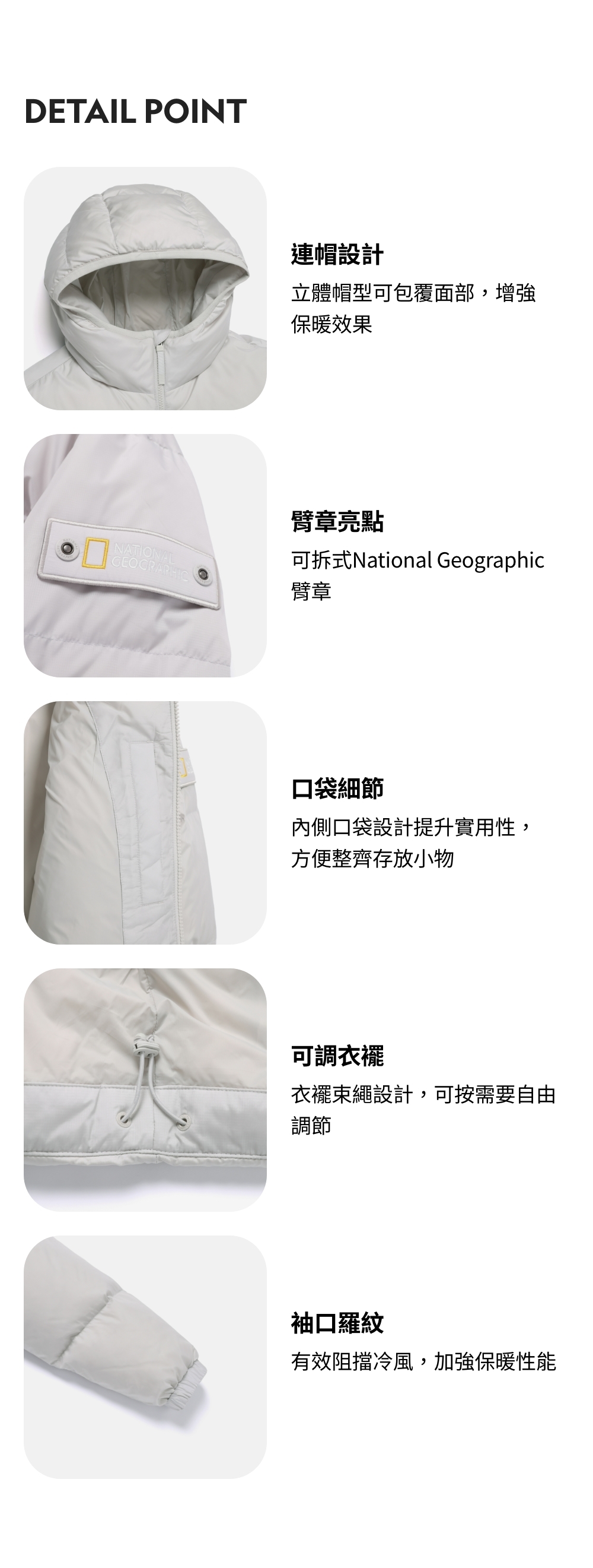 採用輕盈且堅韌的20D ripstop材質及80:20鵝絨填充物,帶來卓越保暖效能與豐盈蓬鬆感。