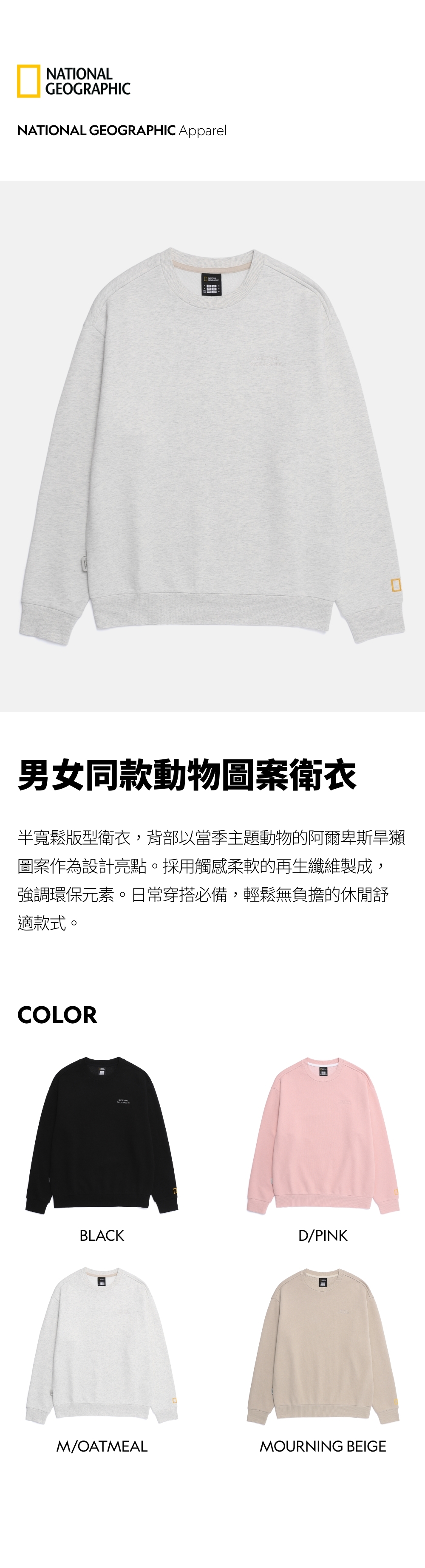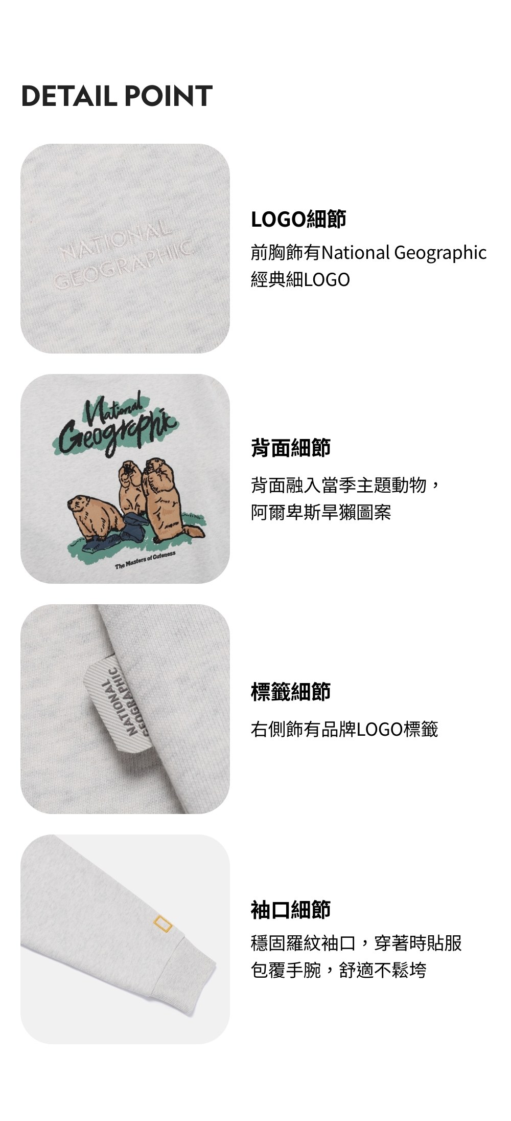 半寬鬆版型衛衣,背部以當季主題動物的阿爾卑斯旱獺圖案作為設計亮點。