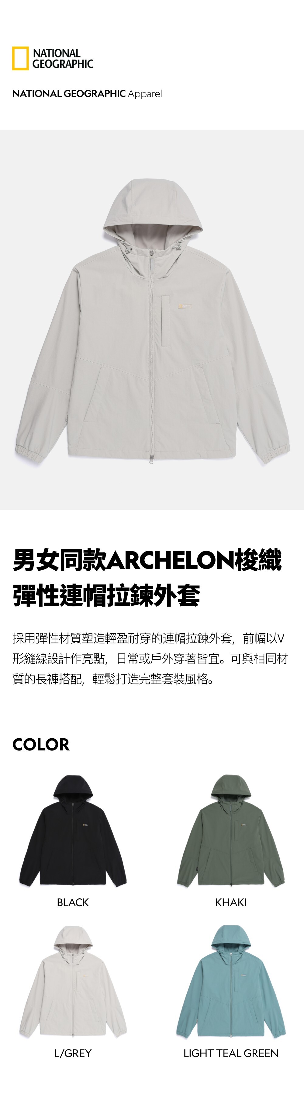 男女同款ARCHELON梭織彈性連帽拉鍊外套