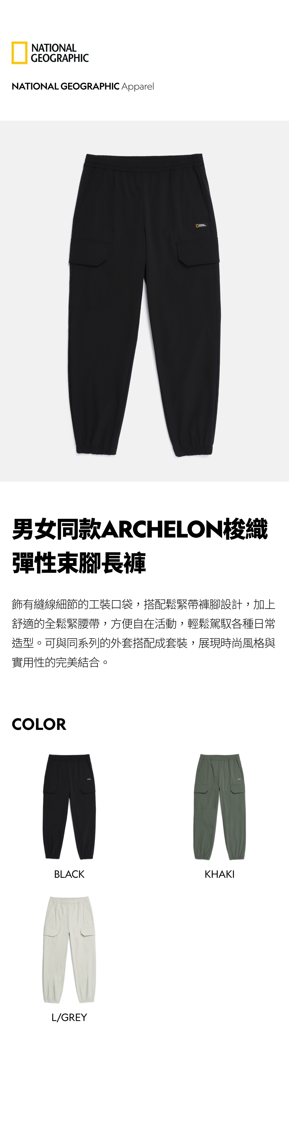 男女同款ARCHELON梭織彈性束腳長褲
