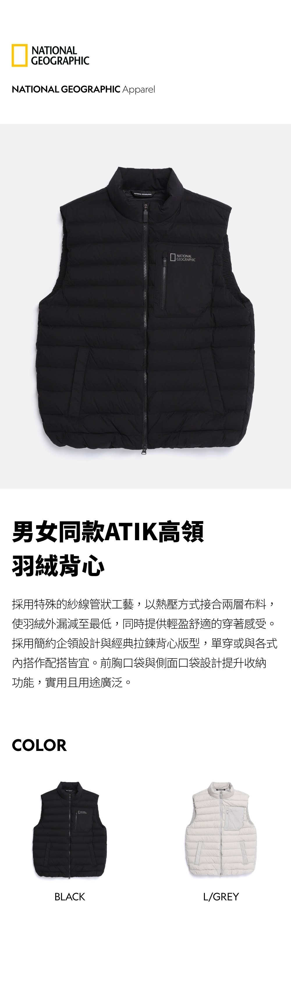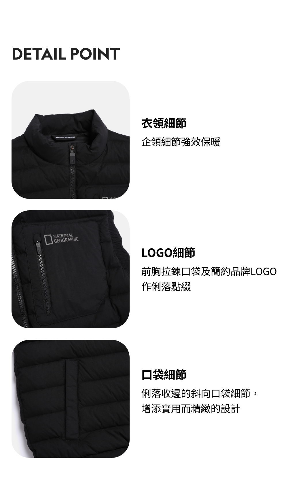 採用簡約企領設計與經典拉鍊背心版型,單穿或與各式內搭作配搭皆宜。