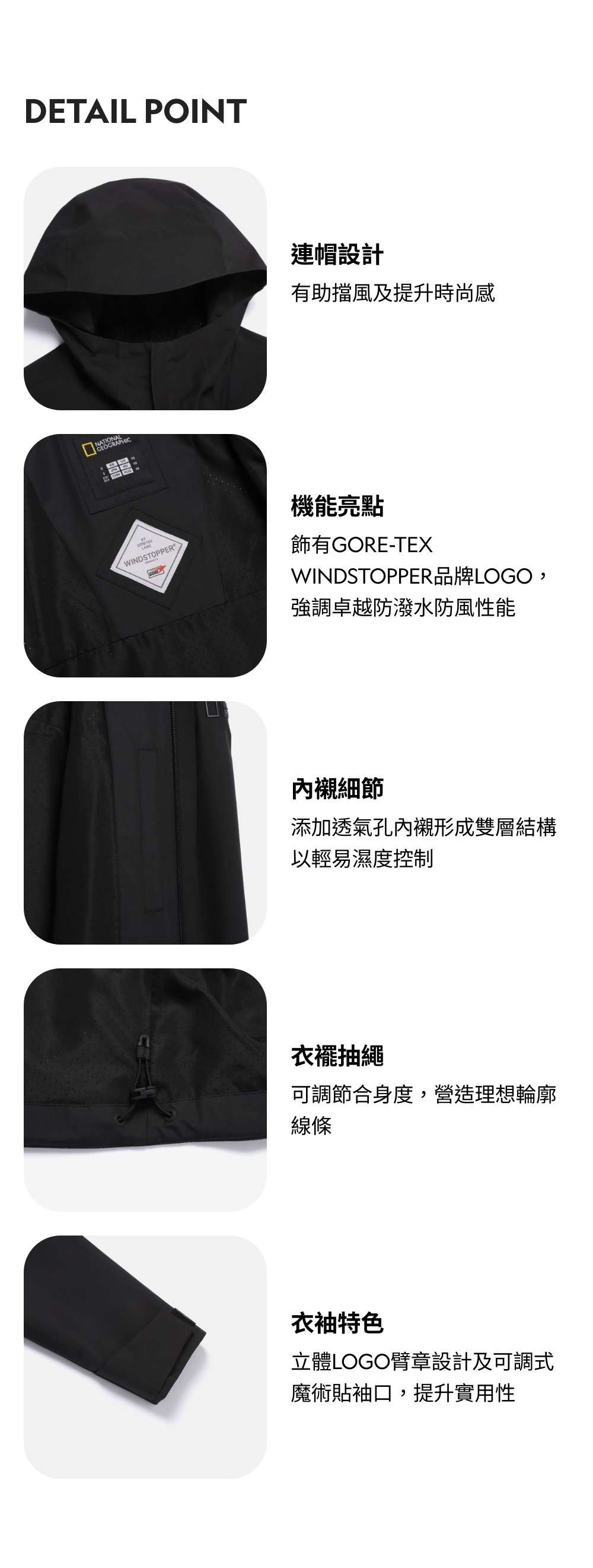 -機能亮點:飾有GORE-TEX WINDSTOPPER品牌LOGO,強調卓越防潑水防風性能