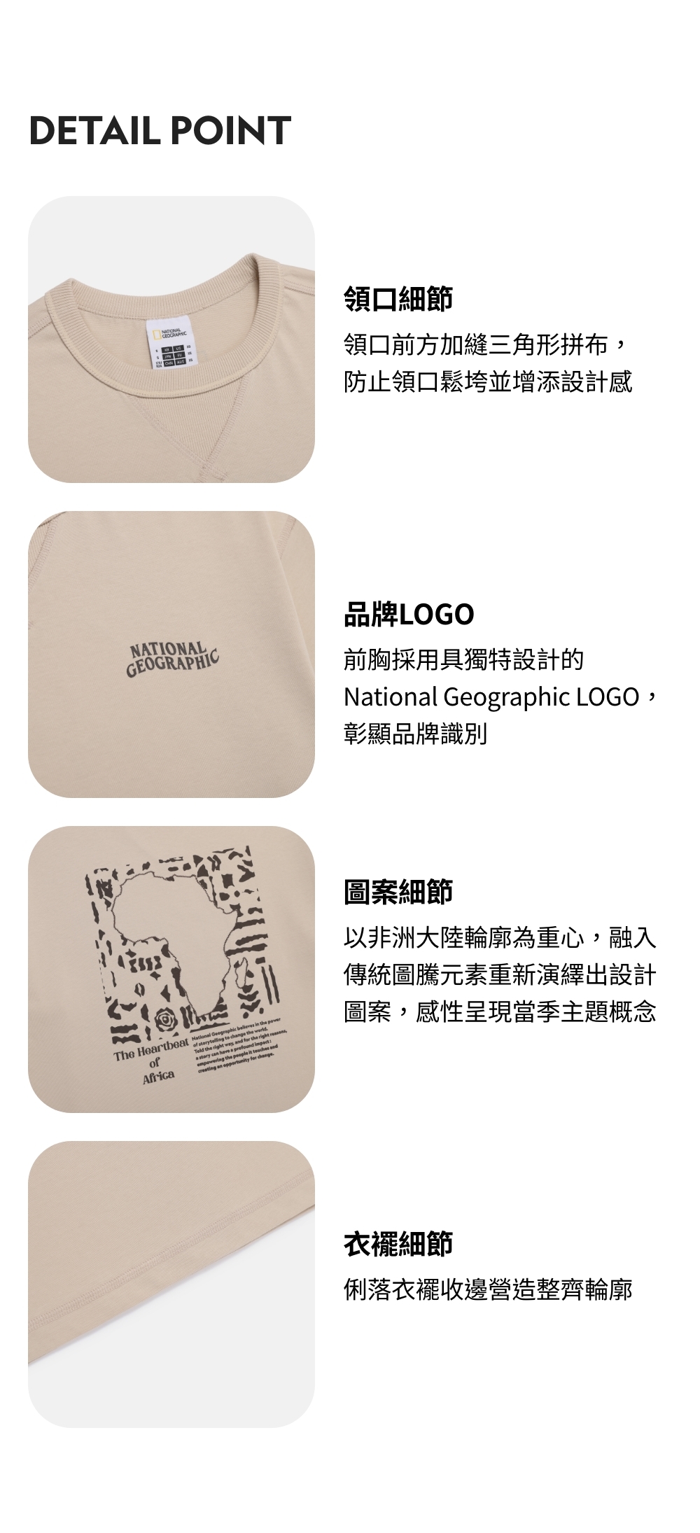 前胸採用具獨特設計的National Geographic LOGO,彰顯品牌識別