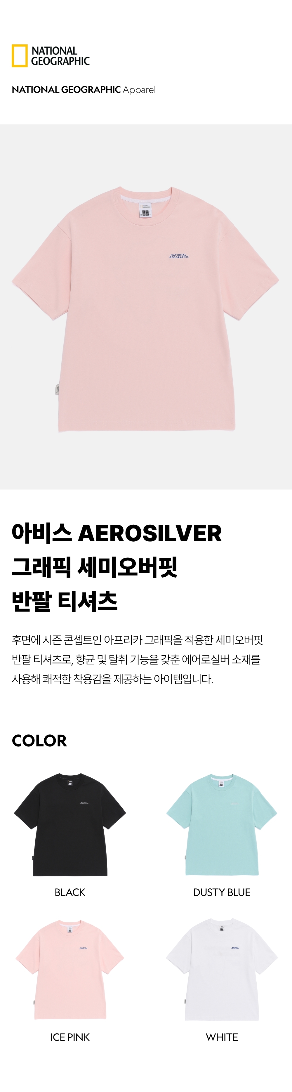 半寬鬆短袖T恤在背面印有以非洲為主題的當季圖案,並採用具抗菌及除臭功能的AEROSILVER材質,帶來乾爽舒適的穿著體驗。