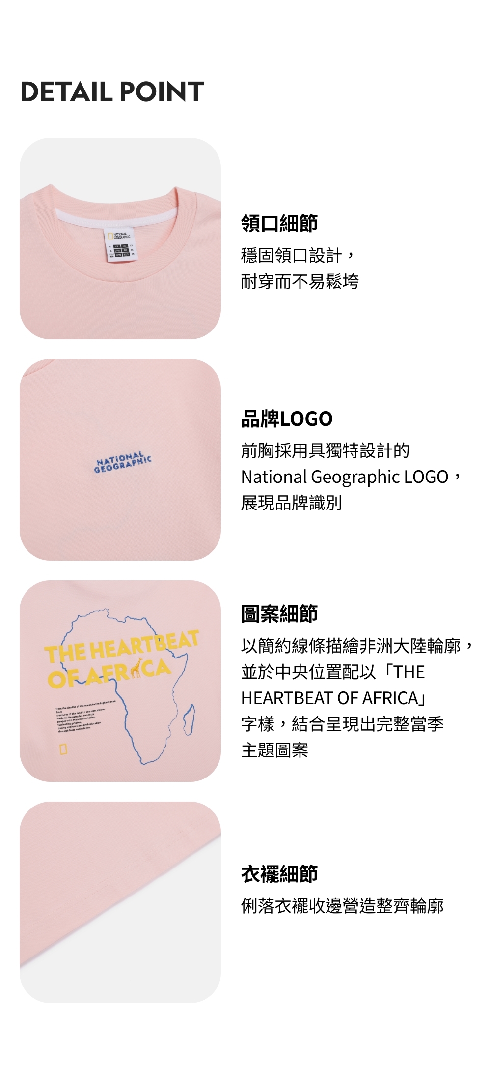 前胸採用具獨特設計的National Geographic LOGO,展現品牌識別