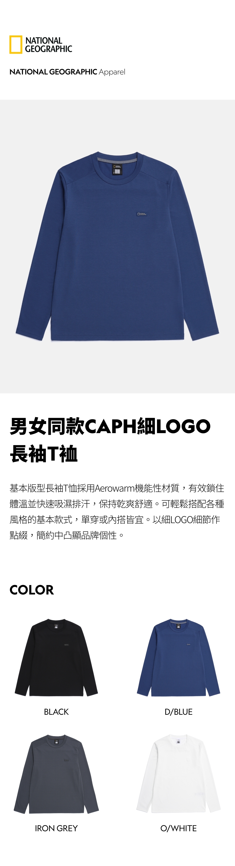 基本版型長袖T恤採用Aerowarm機能性材質,有效鎖住體溫並快速吸濕排汗,保持乾爽舒適。