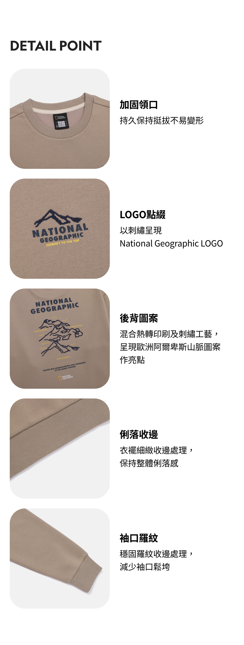 混合熱轉印刷及刺繡工藝,呈現歐洲阿爾卑斯山脈圖案作亮點