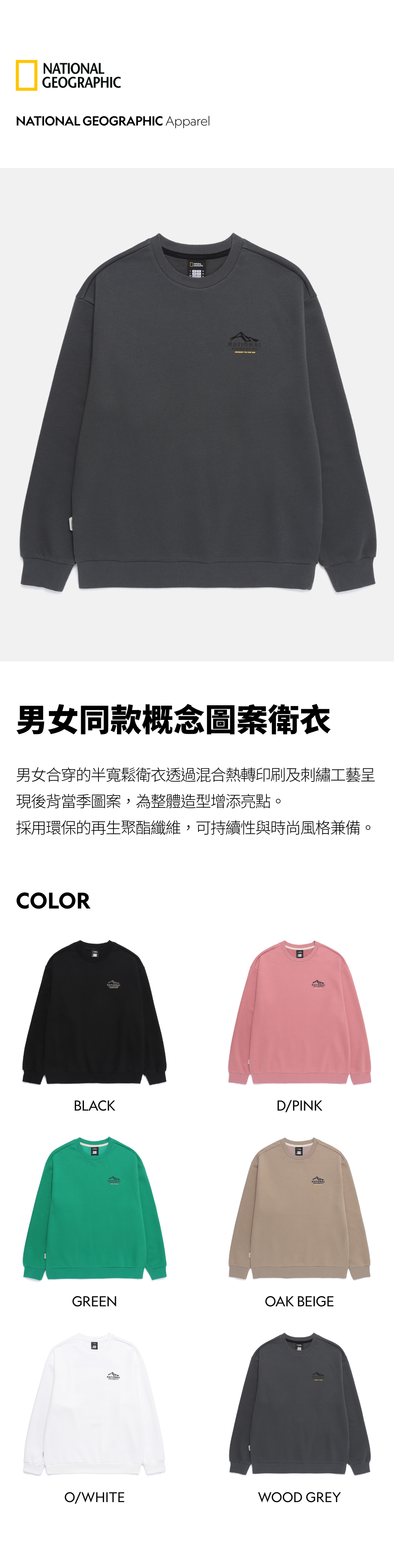 男女合穿的半寬鬆衛衣透過混合熱轉印刷及刺繡工藝呈現後背當季圖案,為整體造型增添亮點。