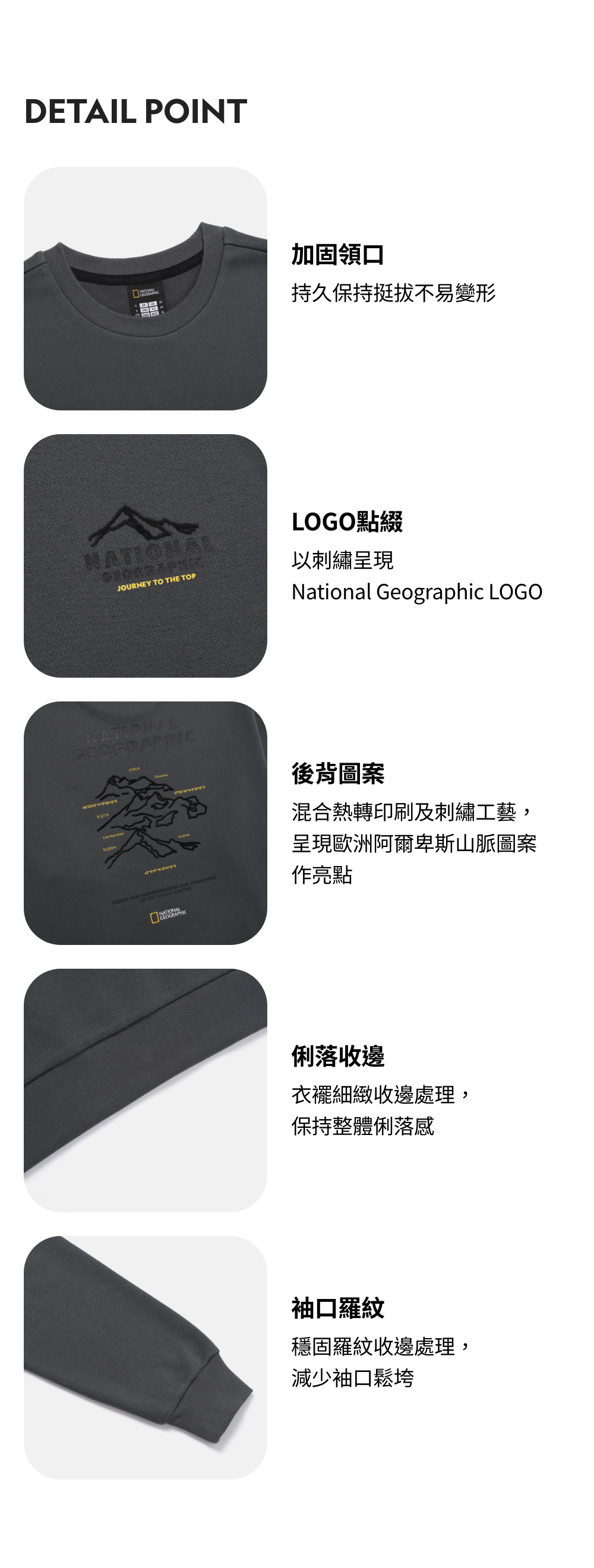 混合熱轉印刷及刺繡工藝,呈現歐洲阿爾卑斯山脈圖案作亮點