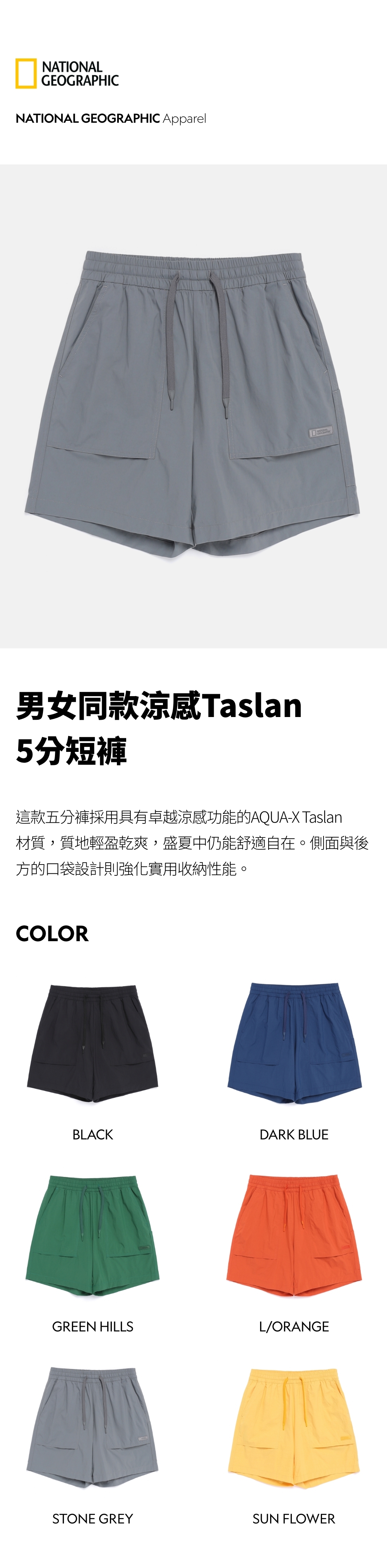 這款五分褲採用具有卓越涼感功能的AQUA-X Taslan材質,質地輕盈乾爽,盛夏中仍能舒適自在。側面與後方的口袋設計則強化實用收納性能。