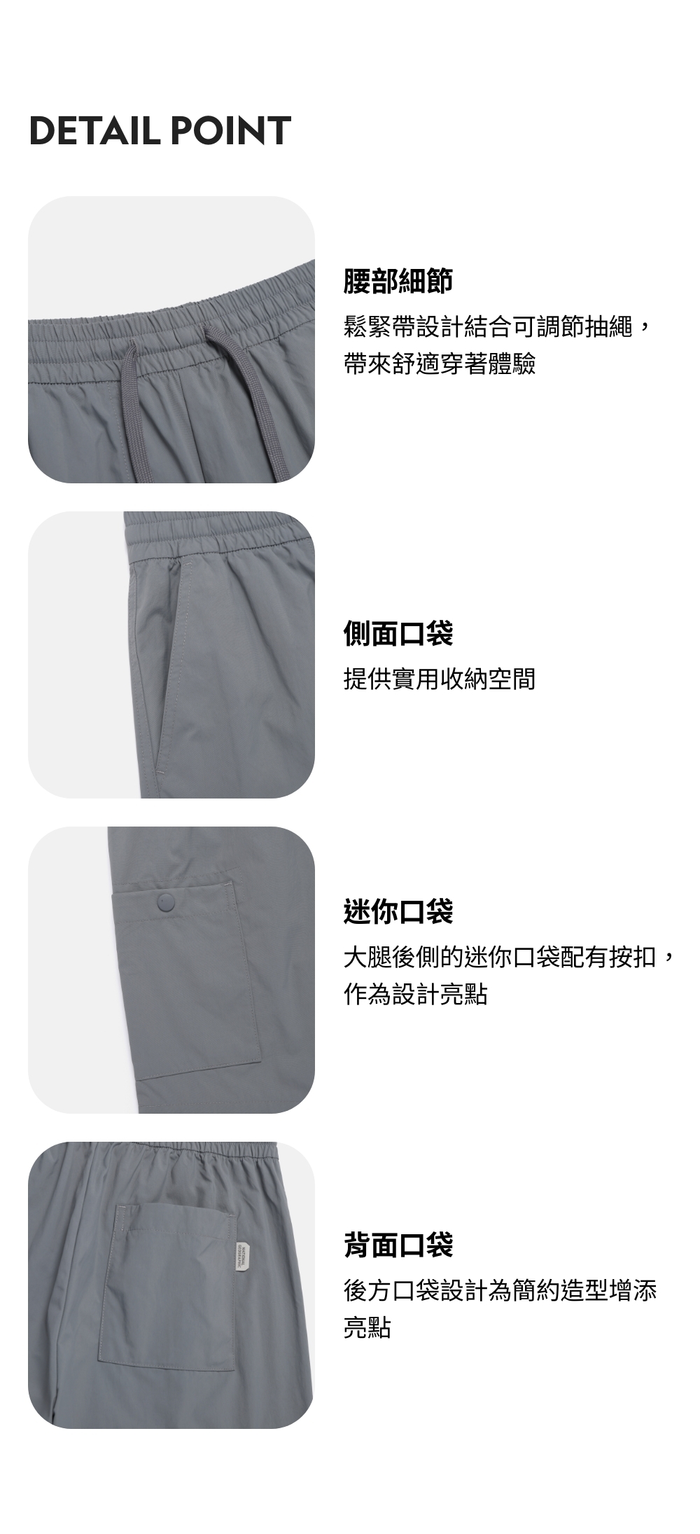 鬆緊帶設計結合可調節抽繩,帶來舒適穿著體驗