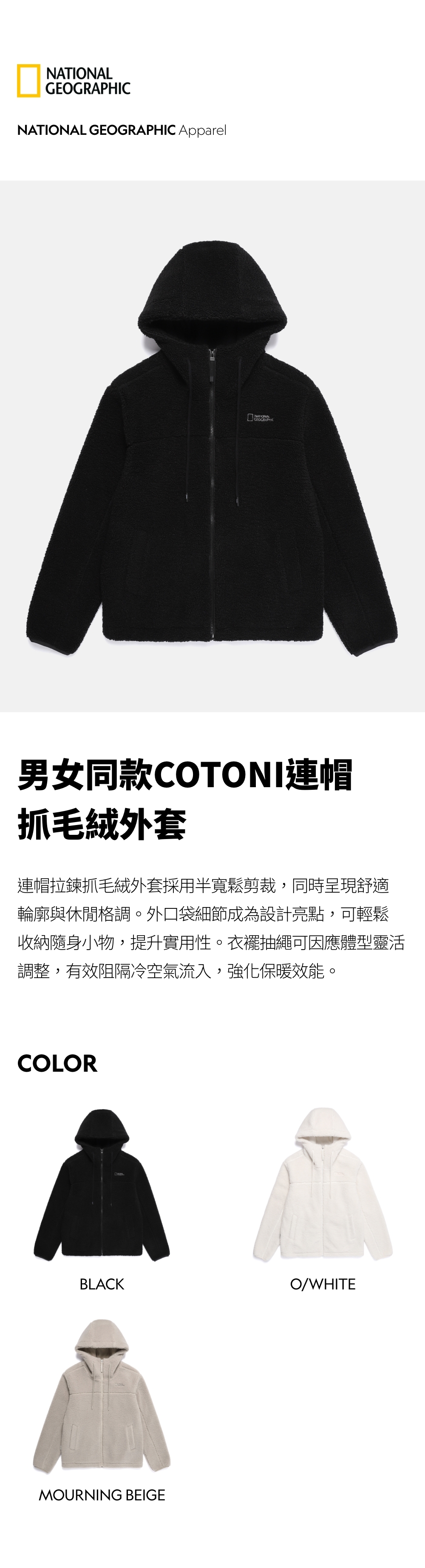 連帽細節:立體剪裁的全覆蓋式連帽設計,有效阻擋冷風,提升保暖效果