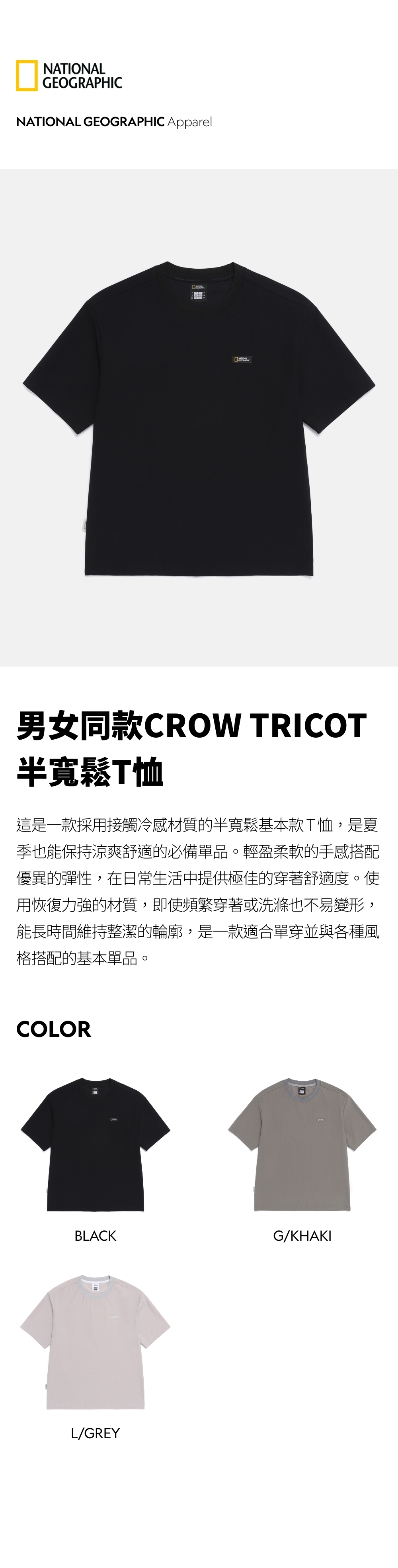 這是一款採用接觸冷感材質的半寬鬆基本款 T 恤,是夏季也能保持涼爽舒適的必備單品。
