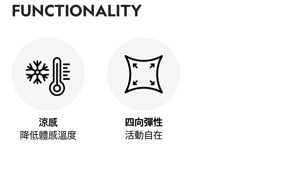 涼感、四向彈性(4-Way Stretch)