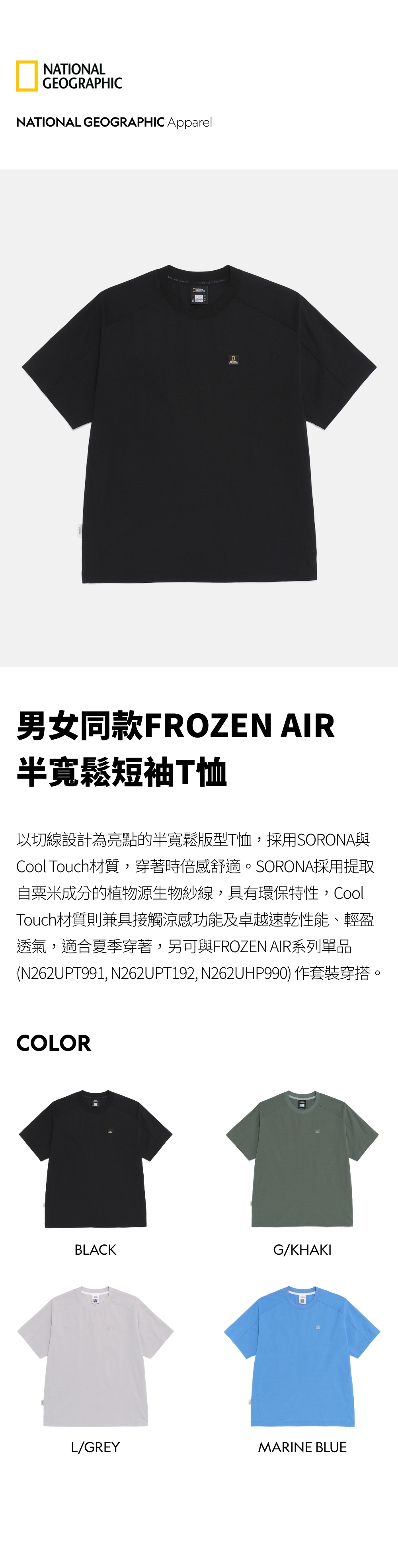 以切線設計為亮點的半寬鬆版型T恤,採用SORONA與Cool Touch材質,穿著時倍感舒適。SORONA採用提取自粟米成分的植物源生物紗線,具有環保特性,Cool Touch材質則兼具接觸涼感功能及卓越速乾性能、輕盈透氣,適合夏季穿著,另可與FROZEN AIR系列單品 (N262UPT991, N262UPT192, N262UHP990) 作套裝穿搭。