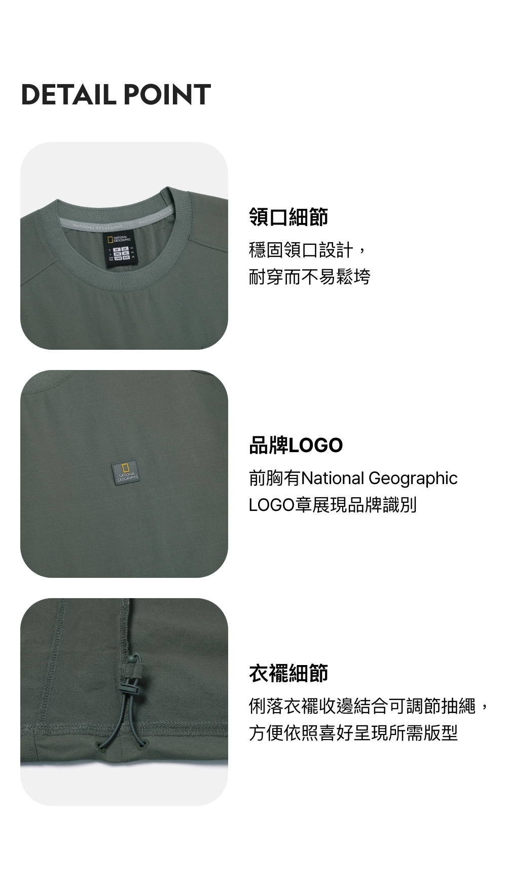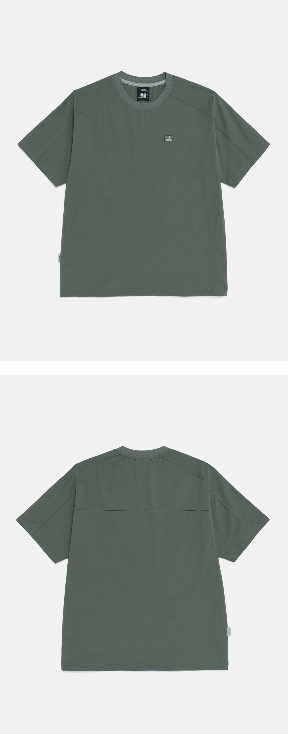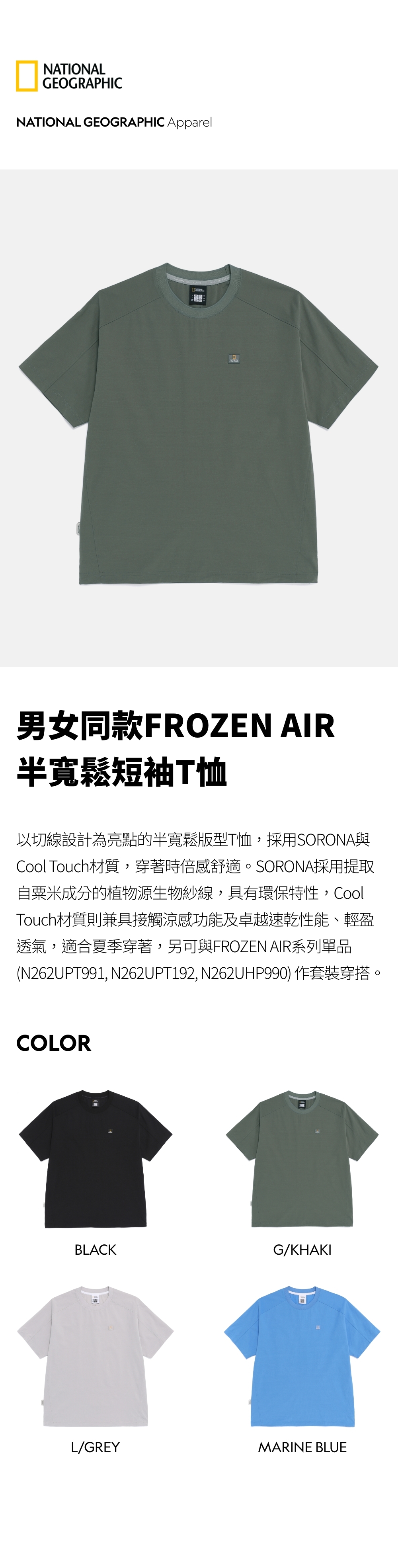 以切線設計為亮點的半寬鬆版型T恤,採用SORONA與Cool Touch材質,穿著時倍感舒適。SORONA採用提取自粟米成分的植物源生物紗線,具有環保特性,Cool Touch材質則兼具接觸涼感功能及卓越速乾性能、輕盈透氣,適合夏季穿著,另可與FROZEN AIR系列單品 (N262UPT991, N262UPT192, N262UHP990) 作套裝穿搭。