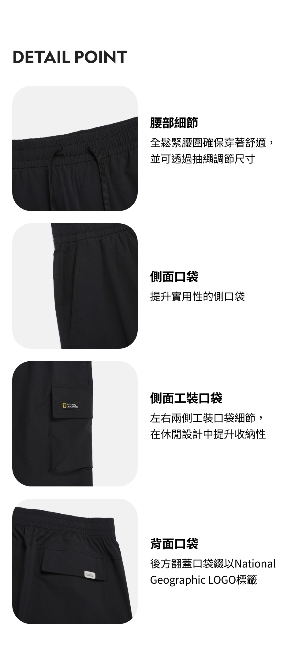 後方翻蓋口袋綴以National Geographic LOGO標籤