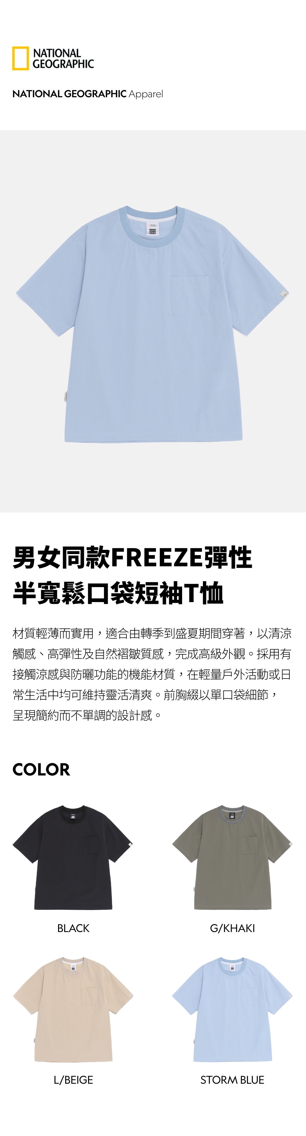 男女同款FREEZE彈性半寬鬆口袋短袖T恤