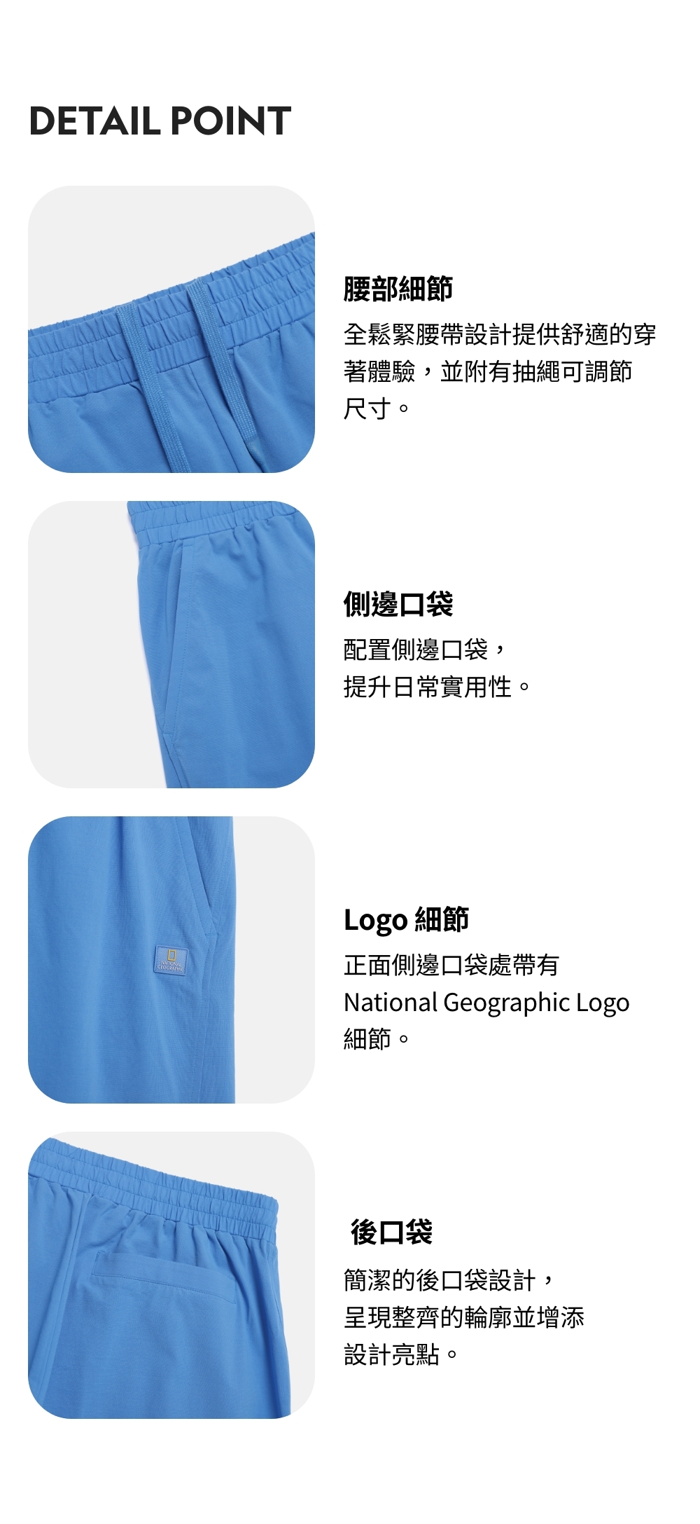 正面側邊口袋處帶有 National Geographic(國家地理)Logo 細節。