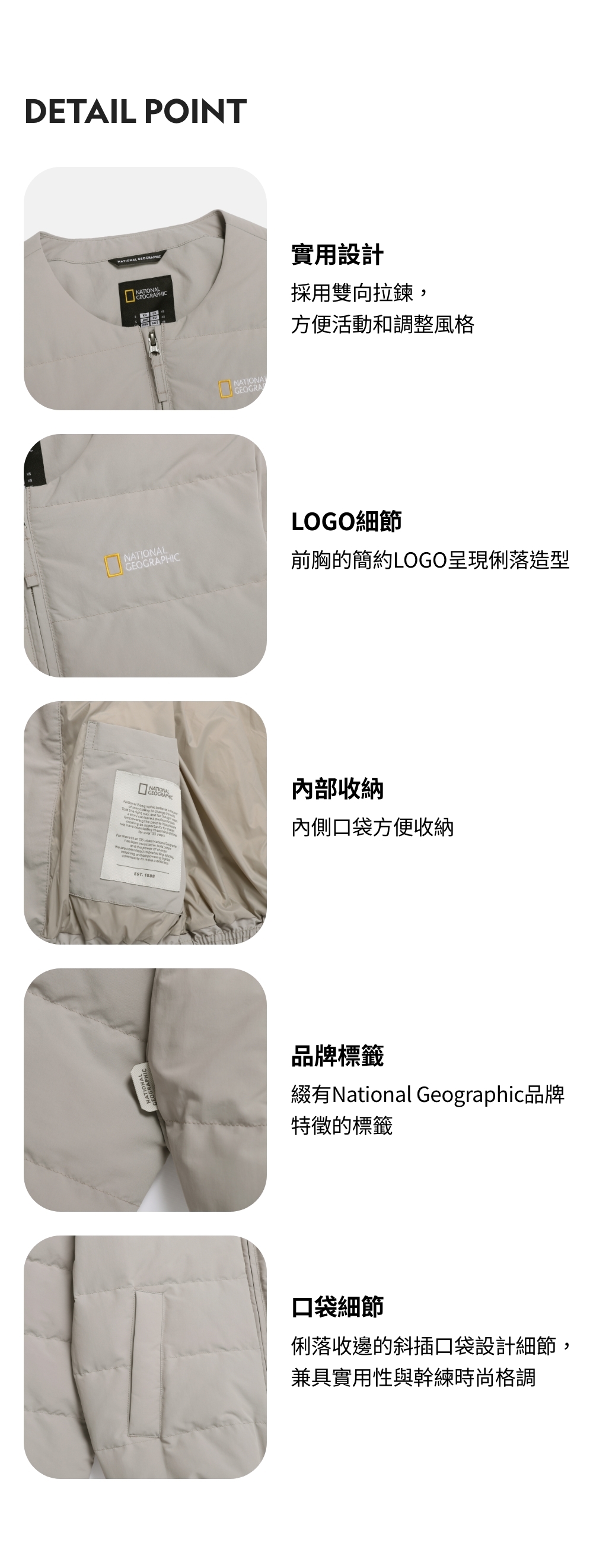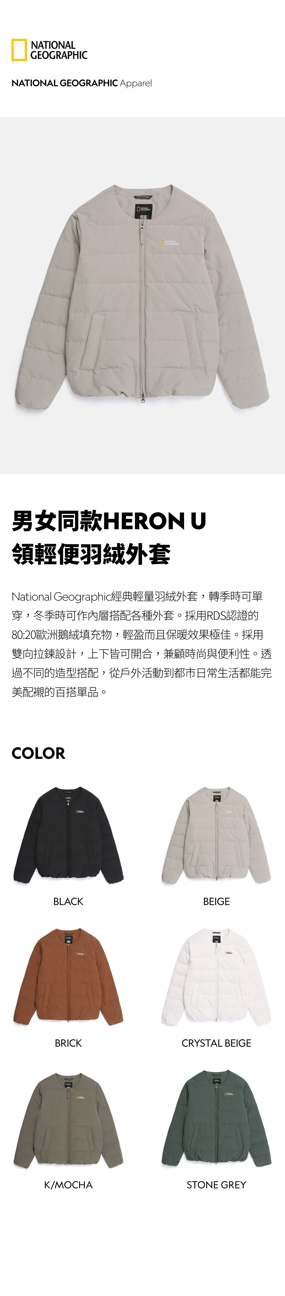 National Geographic經典輕量羽絨外套,轉季時可單穿,冬季時可作內層搭配各種外套。