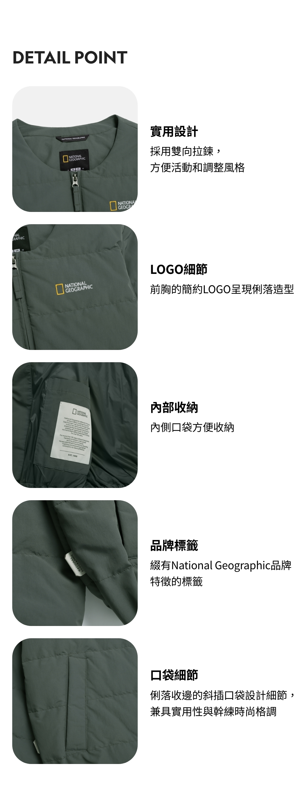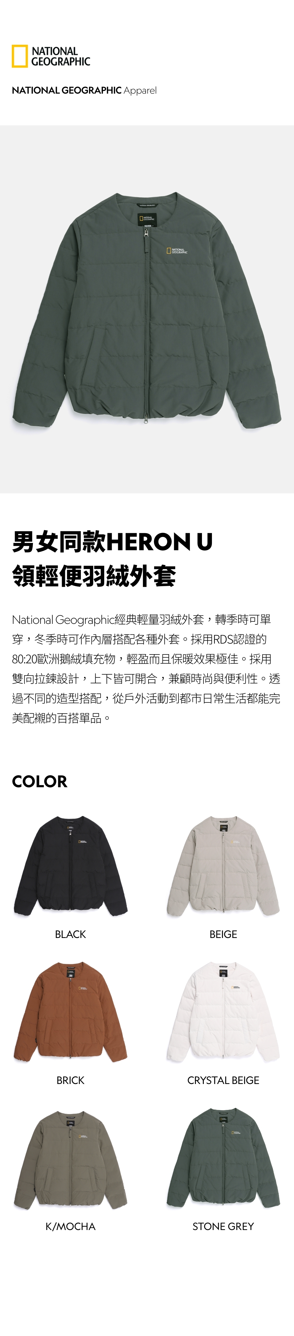 National Geographic經典輕量羽絨外套,轉季時可單穿,冬季時可作內層搭配各種外套。