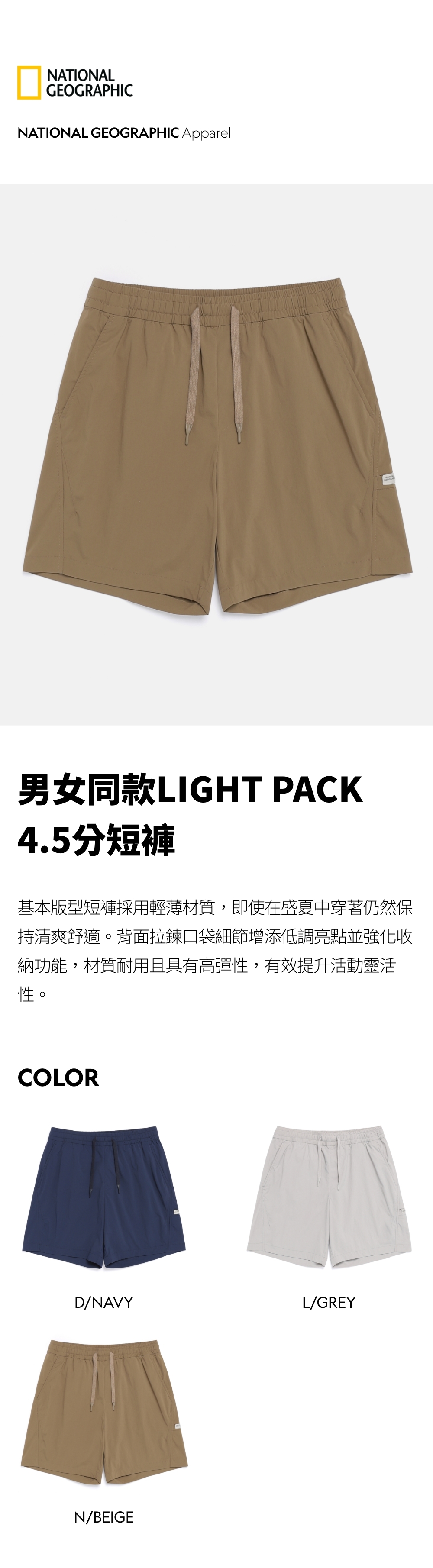 男女同款LIGHT PACK 4.5分短褲