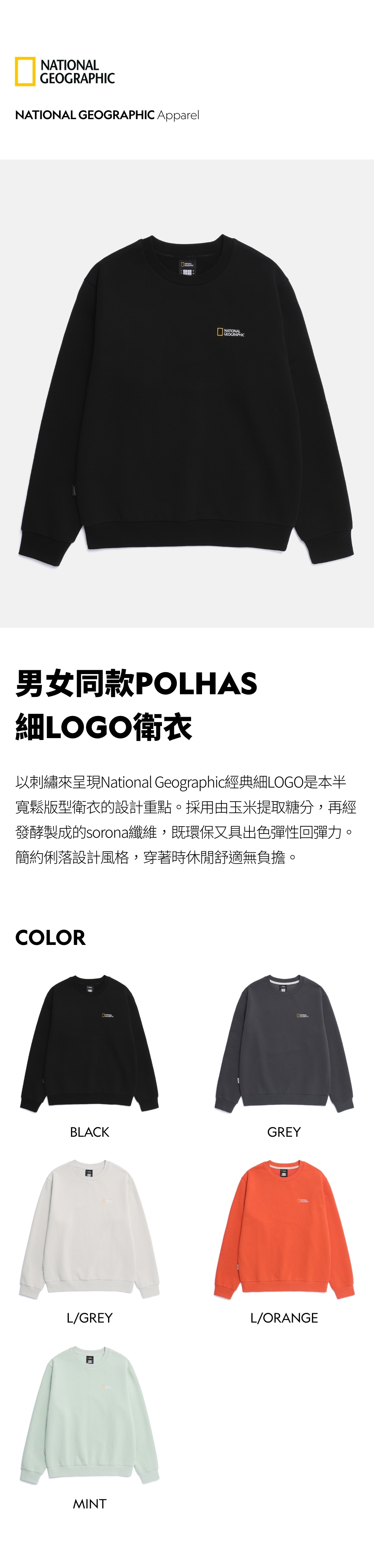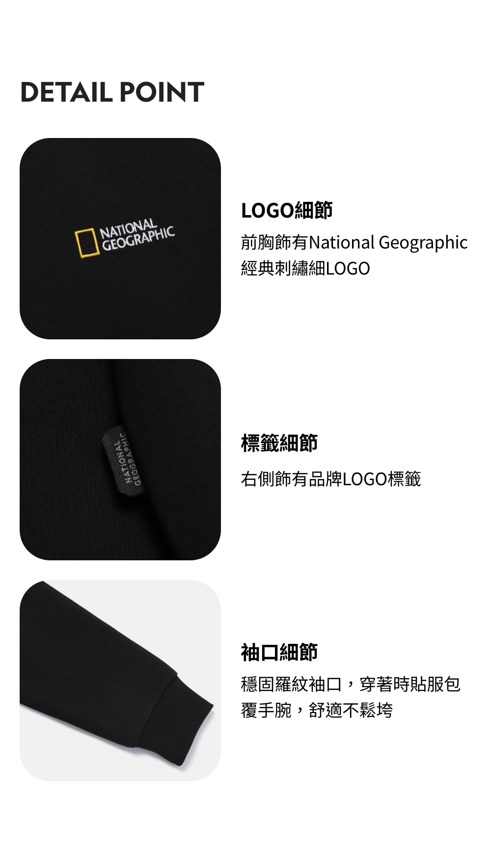 以刺繡來呈現National Geographic經典細LOGO是本半寬鬆版型衛衣的設計重點。